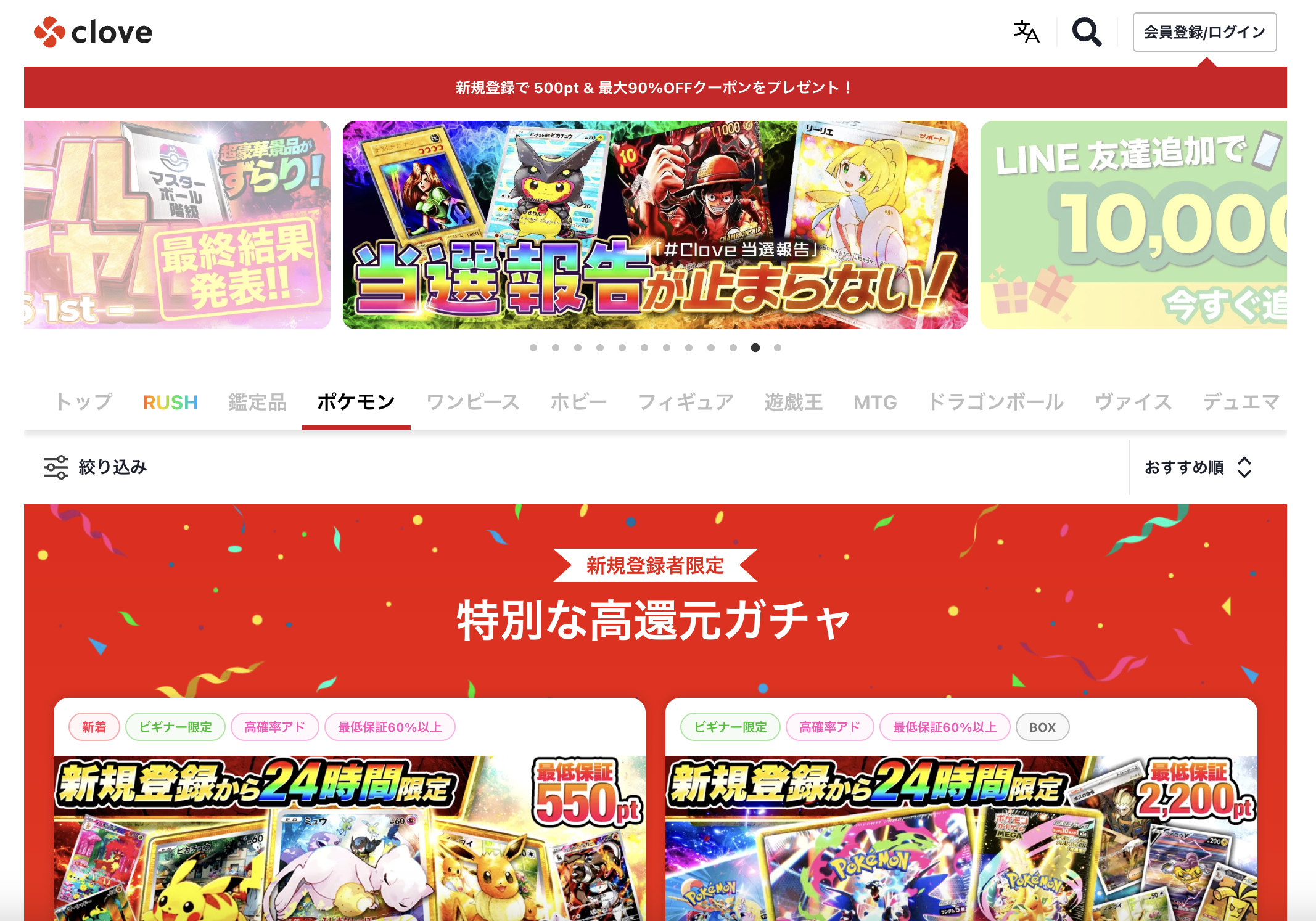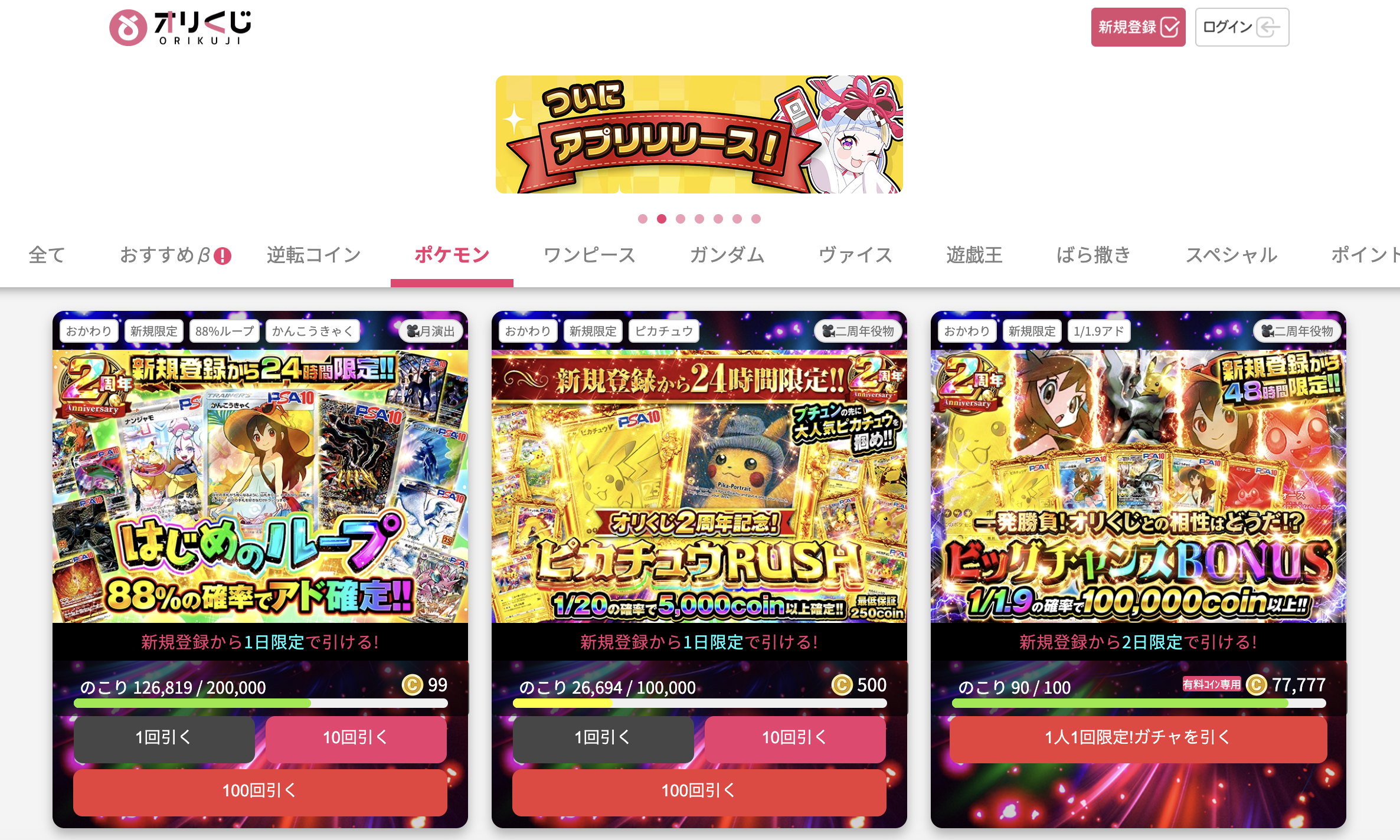 オリパの価格帯も1口50ptからと気軽にひきやすくなっています。