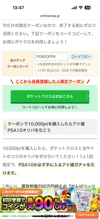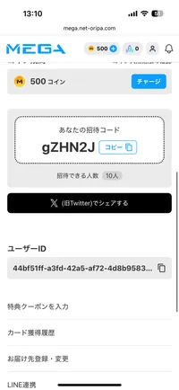 MEGAオリパさん今日からリーリスみたいなので招待コードよかったら使ってください。