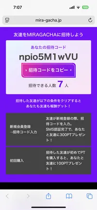 ミラガチャの招待コード