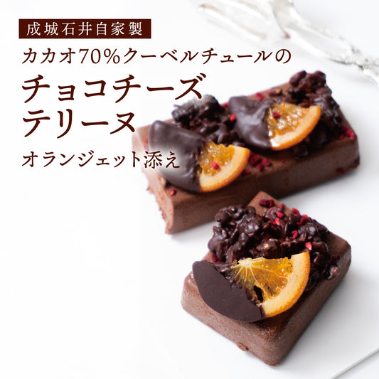 カカオ70%クーベルチュールのショコラチーズテリーヌ オランジェット添え