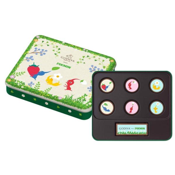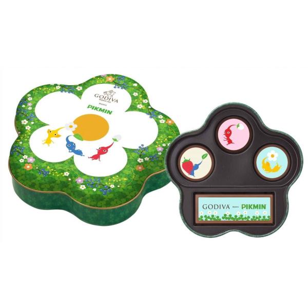それぞれのチョコレートは、各ピクミンのカラーにちなんだフィリング入りで、パッケージはオリジナルデザインの缶となっています。
