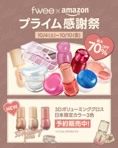 Amazonプライム感謝祭では、韓国コスメブランドfwee(フィー)の新作やベストセラーアイテムが、最大70%オフという「二度とない最安値」で提供されることが発表されました。本記事では、fwee製品のセール情報、価格、購入のポイントを解説します。