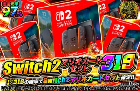 過去には1/319の確率で「Switch2 マリオカートセット」が当たるガチャが開催され、実際に当選報告も出ています。