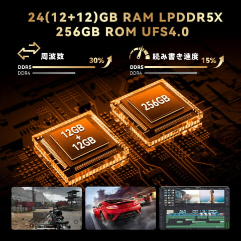 256GB UFS 4.0、TFカード拡張対応(最大2TB)