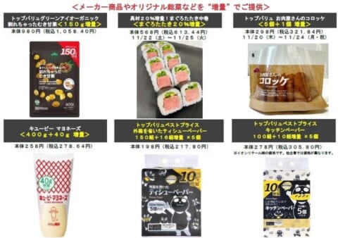 - メーカー商品やオリジナル総菜の「増量」での提供