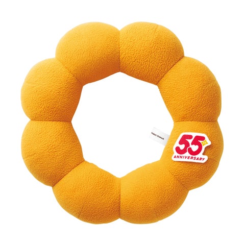 大人気商品ポン・デ・リングがぬいぐるみになって登場します。55周年のオリジナルワッペンがついた特別デザインです。 |
