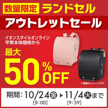 イオンスタイルオンラインにて開催される旧モデルランドセルアウトレットセールの概要は以下の通りです。
