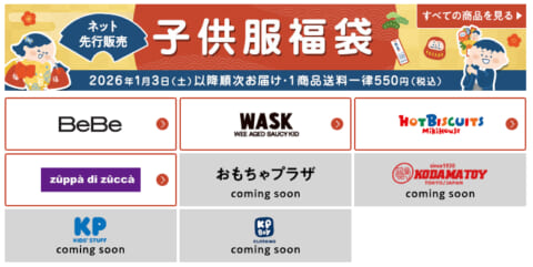 2026年新春に向けた子供服福袋が登場。人気ブランド「ズッパディズッカ」「ミキハウスホットビスケッツ」「WASK」「BeBe」から、男の子用・女の子用がサイズ豊富にラインナップ。2025年11月2日現在、京王百貨店ネット先行販売での取り扱いが確認されています。