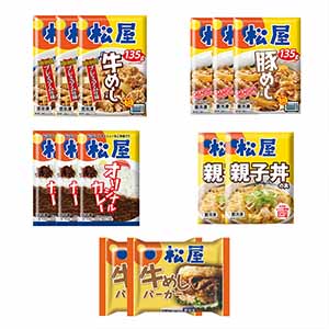 松屋 お楽しみセット 5種13食は、新登場の松屋の人気メニュー5種13食がセットになった福袋です。送料込みの冷凍便で、2025年12月24日から12月28日の期間にお届けされます。