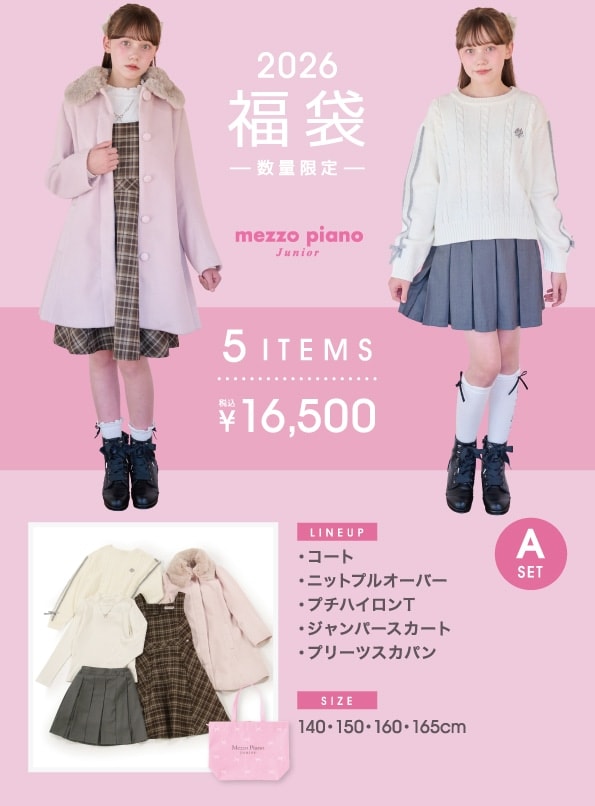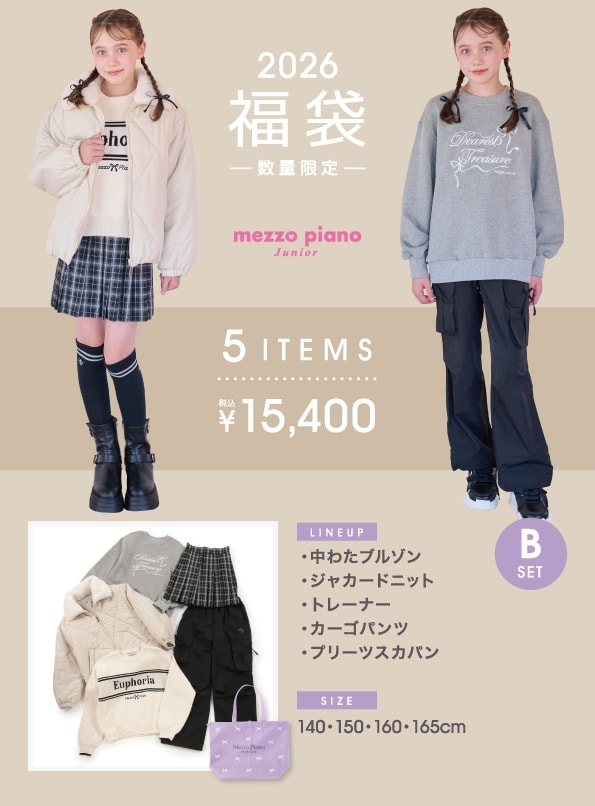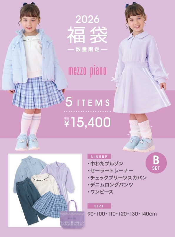 数量限定福袋 子供服 2026 メゾピアノジュニアのカジュアルコーデが楽しめる5点セット。