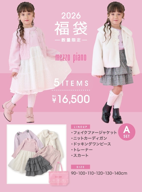 数量限定福袋 子供服 2026 上品でガーリーなスタイリングが楽しめる5点セット。