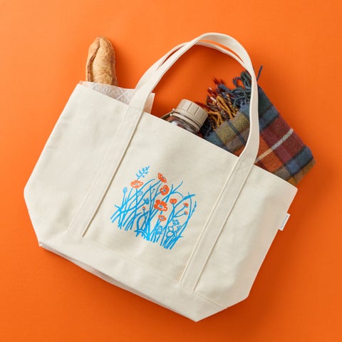 すべての商品は、“お茶のある暮らしと風景”をテーマに、庭に咲く花や植物のイラストをあしらったオフホワイトのオリジナルバッグに詰め込まれます。このバッグは日常使いにも適したデザインです。