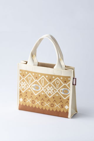 「包み焼きハンバーグ柄ニットバッグ」は、ココスらしい商品をデザインに取り入れた、冬にぴったりなノルディック柄のニットバッグです。