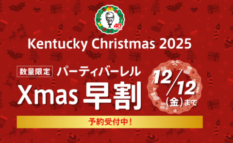 ケンタッキーのクリスマスメニュー予約が、KFCネットオーダーで2025年11月4日より開始。