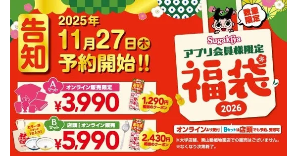 FREAK’S STOREは、2026年福袋「HAPPY BAG」の予約を2025年11月13日12時より開始しました。ウィメンズ・メンズそれぞれ2種類、計4種類の福袋がラインナップされ、アウターを含むトータルコーディネートが楽しめる内容です。