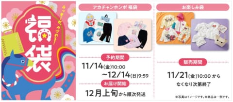 2026年版福袋の販売スケジュールが発表されました。新生児・ベビー・キッズ向け福袋は2025年11月14日より予約開始、その他の福袋も順次販売されます。