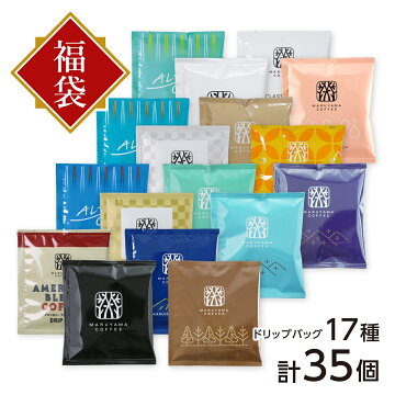 丸山珈琲の多彩な味わいを手軽に楽しめるドリップバッグ17種、計35個の福袋です。浅煎り、中煎り、中深煎り、深煎り、カフェインレスとバラエティーに富んだ味わいが揃っています。創業当時からの定番ブレンドや期間限定ブレンド、店舗ブレンドの他、通販のみ取り扱いのドリップバッグも含まれます。抽出器具がなくても、カップとお湯さえあれば本格的なスペシャルティコーヒーの味わいを簡単に楽しむことができます。