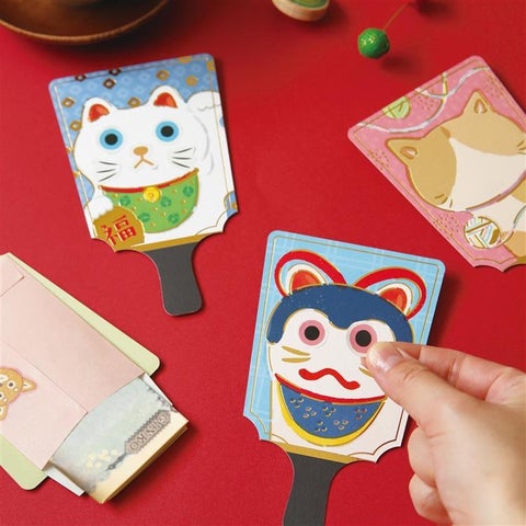 付属のシールで目や鼻、口などを自由に配置し、福笑いのように遊ぶことができるぽち袋です。全4種類が用意されています。