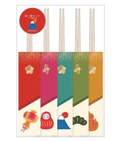干支や縁起物をモチーフとし、池田衣絵氏、オビワン氏、柿本芳枝氏、小森夏海氏、松尾ミユキ氏(50音順/敬称略)といった各クリエイターの個性が生かされたデザインの祝箸5膳セットです。