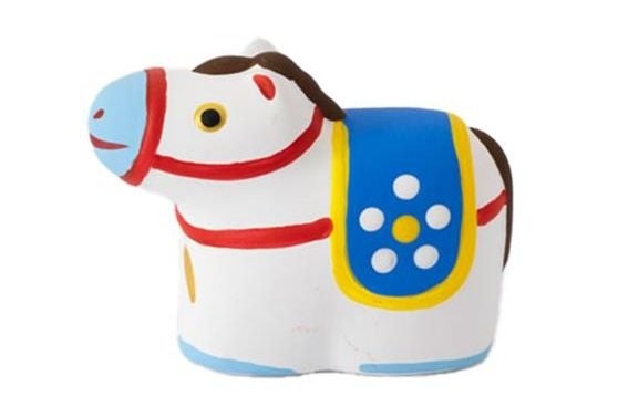 郷土玩具風のデザインを取り入れた置物。成功・進展・繁栄の象徴とされる黒い馬は、ロフト限定カラーとして登場します。