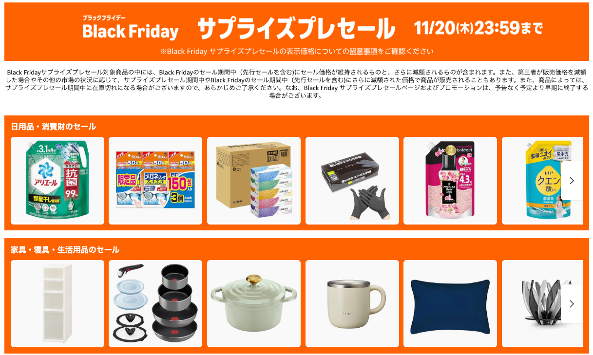 Amazonが開催する「Black Friday サプライズプレセール」は、年に一度の大型セール「ブラックフライデー」に先駆けて実施される特別なセールです。