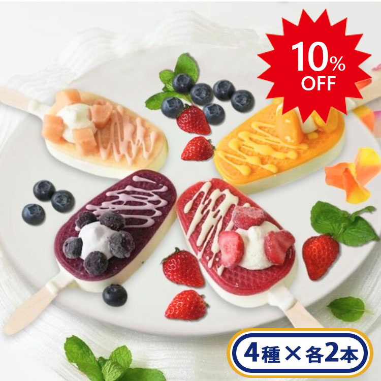 パフェのような贅沢な味わいを楽しめる「パフェアイスバー8本セット」は、定価4,968円から4,471円で、送料無料(※一部地域を除く)です。