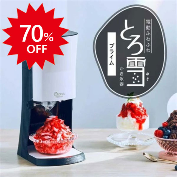 自宅で本格的なかき氷を楽しめる「電動ふわふわとろ雪かき氷器プライム」は、定価7,568円から2,270円と大幅な割引が適用されています。