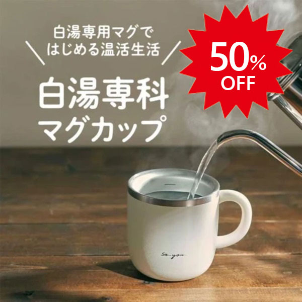 日々の健康をサポートする「白湯専科マグカップ 320ml」は、定価3,938円のところ1,969円での提供です。