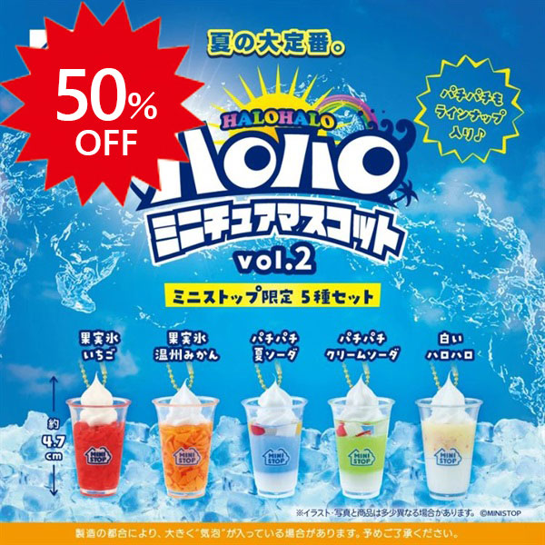 ミニストップの人気スイーツ「ハロハロ」のミニチュアマスコット全5種セットは、定価2,200円のところ、1,100円でご購入いただけます。