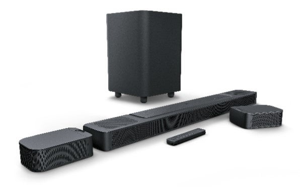 Dolby Atmos対応により5.1.2chの立体音響空間を実現するサウンドバーです。映画館の音を知り尽くしたJBLが大口径サブウーファーで“リアルエフェクト”を実現。着脱可能な充電池内蔵ワイヤレス・リアスピーカーを搭載し、音だけでなく映像も最新のデジタルフォーマットに対応しています。Wi-Fi6内蔵で音楽やスマートホームにもフル対応し、設定から音楽再生まで一元管理を可能にする統合型アプリ「JBL ONE」にも対応しています。