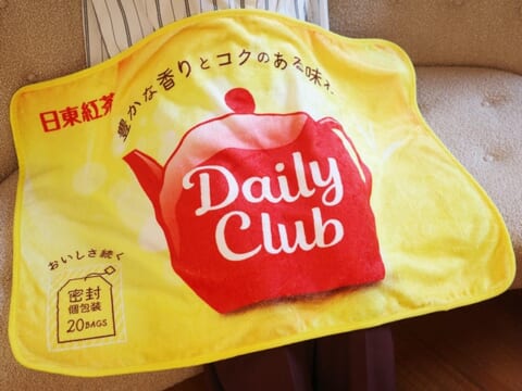 「ブランケットコース」では、日東紅茶のロゴとデイリークラブのパッケージデザインが印刷されたオリジナルブランケットが付属します。