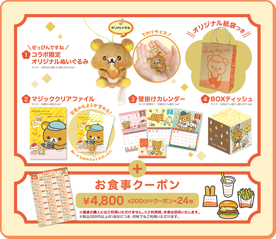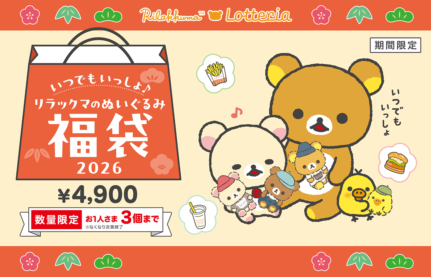 毎年恒例になっているリラックマとロッテリアのコラボ福袋は2026年も販売されます。