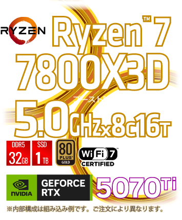 ゲーミングPCを中心に、最新CPU(Ryzen 7 9800X3D、Core Ultra 9 285KFなど)と高性能GPU(GeForce RTX 5090、RTX 5080、RTX 5070Tiなど)を搭載したハイスペックモデル。小型RGBゲーミングPC、静音性やクリエイター用途に特化したモデルも対象です。 |