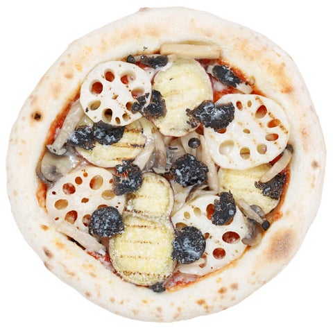 石川県を代表する加賀レンコン・五郎島金時と、香り高い高級食材トリュフを贅沢にあしらった一枚です。モリナポ特製のトマトソースをベースに、国産きのこやチーズが旨みを重ねます。