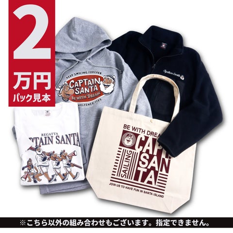 キャプテンサンタのハッピーパックは、1万円と2万円の2種類を用意しており、どちらも特別な内容です。中身は開けてからのお楽しみという趣向です。