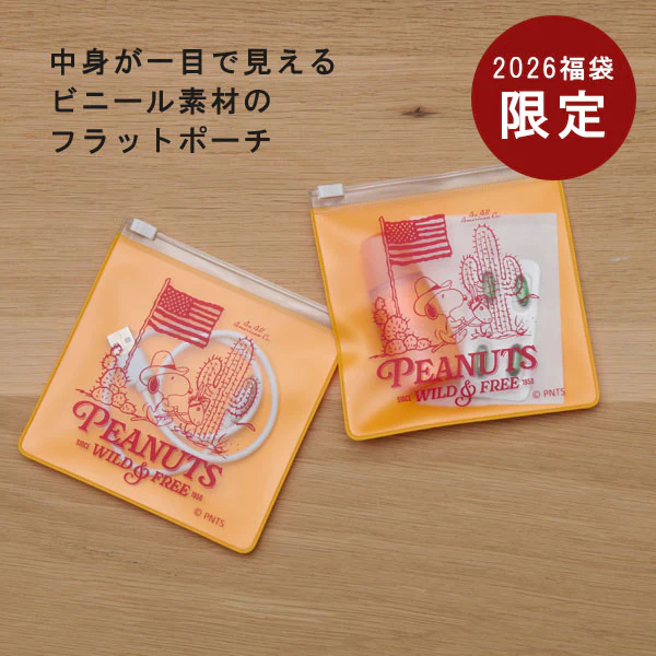 PEANUTS FRIENDS CLUB会員限定で、オンラインショップでの先行販売よりも早く、予約できる期間が設けられています。こちらではサガラ刺繍をあしらったスヌーピーのポーチが付いたセットも数量限定で販売されました。