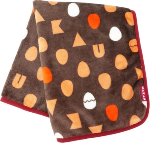 たまごデザインが特徴で、ふんわり柔らかく肌触りのよいブランケットです。約タテ70×ヨコ100cmと大きすぎないサイズ感と軽さで、ご自宅はもちろん、外出先やオフィスなどさまざまなシーンで手軽に利用できます。ボタン付きで、羽織った際に前で留められる仕様になっており、寒い季節に活躍するあったかアイテムです。