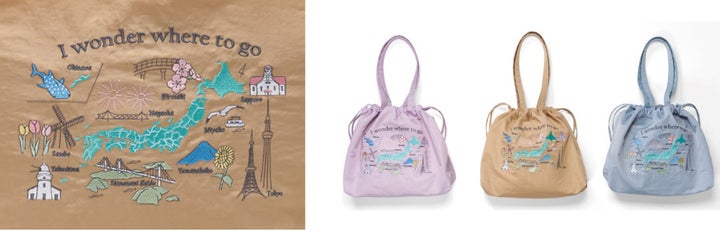 店舗担当者がおすすめするのは、刺繍入りドローストリングバッグがメインの福袋です。日本列島のイラストマップに10エリアの観光スポットの魅力を繊細な刺繍で表現し、旅心を誘うデザインに仕上げています。