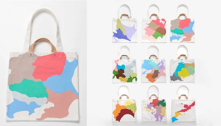 オンラインストア担当者がおすすめする福袋は、全国9エリアから選べるスクエアトートバッグが特徴です。肩がけと手持ちの2way仕様で、地図を大胆にデフォルメしたデザインが目を引きます。