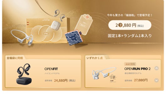 オープンイヤー型イヤホンメーカーShokzは、一年の感謝を込めて「耳に福くる Shokz 福袋 2026」を2025年12月16日(火)より数量限定で販売します。