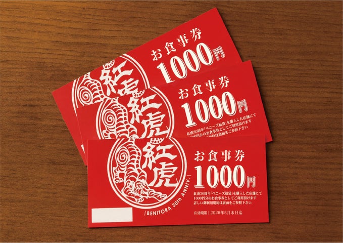 紅虎餃子房は、創業30周年を記念し、ファンの皆さまへの感謝を込めた特別福袋「ベニーズ福袋」を数量限定で販売します。