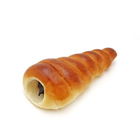 巻貝の形をした昔ながらの手作りパンです。中にチョコレートクリームを入れました。