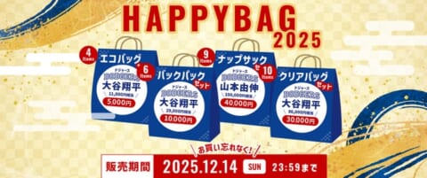 大谷翔平選手、山本由伸選手のファングッズを詰め合わせた「ハッピーバッグ2025」全4種 |