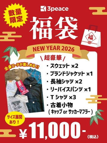 株式会社3peaceは、2026年の新年を彩る「超豪華福袋」を1月1日より店頭で販売します。オンラインストアでは現在先行予約を受付中で、12月20日から順次発送を開始します。