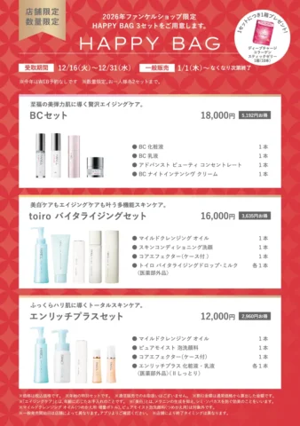 ファンケルは2025年12月16日より、通信販売および直営店舗にて福袋キャンペーンを開始します。通信販売では対象商品が20%オフとなる「選べる福袋2026」が登場。この特別な機会に、開催内容や参加方法を詳しく紹介するのでぜひ参考にしてください。