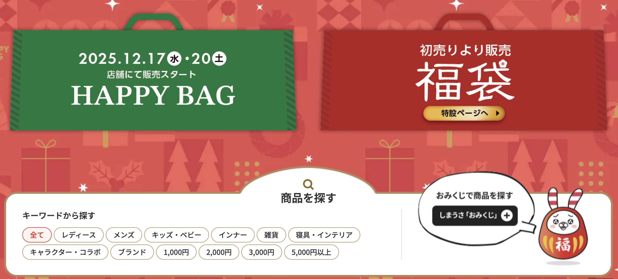 【しまむら】歳末セールで福袋を買ってみた!人気キャラ・インフルエンサーのハッピーバッグは30分で完売【ハッピーバッグ2026】