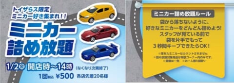1月2日(土)限定!トイザらスオリジナルミニカー詰め放題