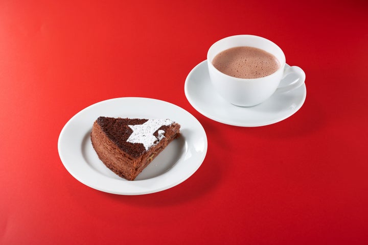 ムニュ ガレット デ ロワは、「ガレット デ ロワ カスパール」と好みのドリンク(ショコラ ショ パリジャン、ショコラ グラッセ、紅茶、コーヒー、ネクター)のセットメニューです。ガレット デ ロワは、カメルーン産カカオとオレンジを合わせたアーモンドクリームに、ペルー産カカオクリームを重ね、風味豊かなパイ生地で香ばしく焼き上げています。価格は1,782円(税込)です。