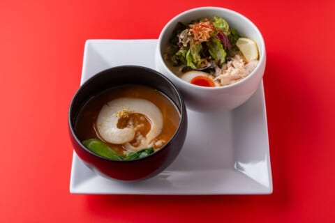 フカヒレ姿煮ご飯と鶏白湯塩そばハーフ &ハーフは、ヨシキリサメのフカヒレ姿を使用したあんかけご飯と鶏白湯塩そばをハーフサイズで組み合わせたセットです。価格は4,818円(税込)で、1日限定10食です。