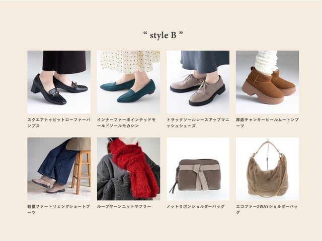 パンプス、ブーツ、スニーカー、バッグ等のシーズナルアイテム |